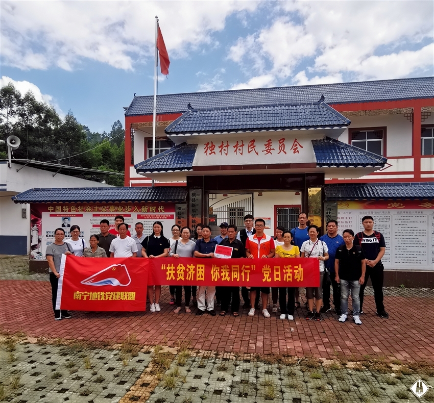 建行園湖支行經(jīng)營(yíng)中心黨支部書記韋忠斌對(duì)扶貧隊(duì)員及村干部的辛苦工作表達(dá)了慰問(wèn),并為獨(dú)村捐贈(zèng)扶貧款2800元,用于幫助獨(dú)村購(gòu)買垃圾清運(yùn)車輛、垃圾焚燒所需物品等。軌道地產(chǎn)黨委下屬第一黨支部、軌道地產(chǎn)物業(yè)公司黨支部為獨(dú)村捐贈(zèng)了黨報(bào)黨刊等讀物,幫助村里建設(shè)黨建學(xué)習(xí)角。
