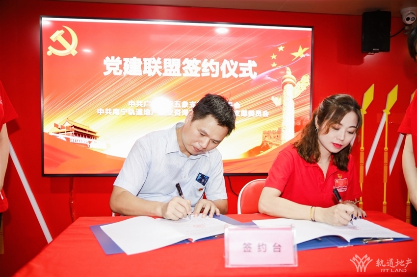 活動伊始,軌道地產咨詢公司黨支部與廣發(fā)銀行南寧五象支行黨支部進行黨建聯(lián)盟簽約儀式。雙方黨支部書記在與會人員的共同見證下簽訂了黨建聯(lián)盟協(xié)議,軌道地產咨詢公司黨支部向廣發(fā)銀行南寧五象支行黨支部贈送南寧地鐵黨建聯(lián)盟牌匾。