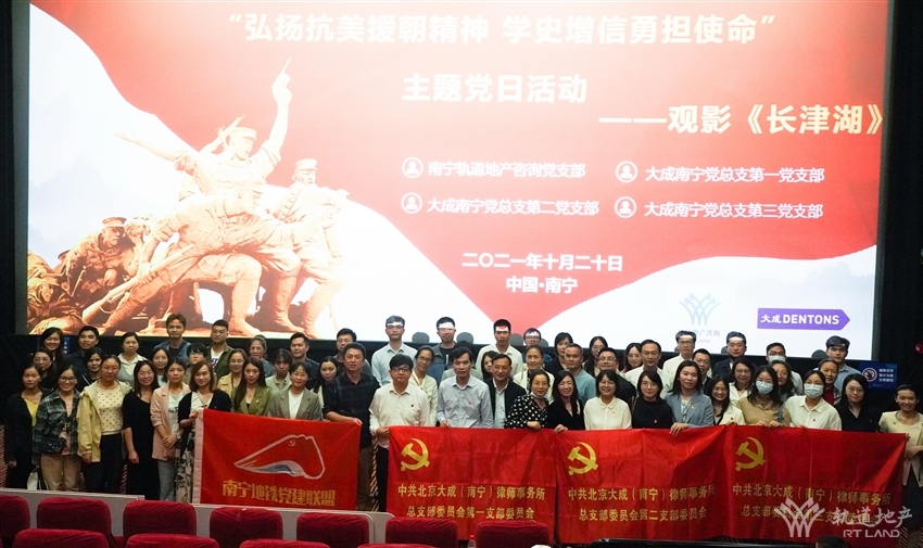 為進一步踐行黨史學習教育,弘揚愛國主義精神, 1020日晚,軌道地產(chǎn)咨詢公司黨支部攜手黨建聯(lián)盟單位中共北京大成(南寧)律師事務(wù)所總支部委員會聯(lián)合開展觀看愛國主義題材影片《長津湖》,重溫抗美援朝光輝歷史,傳承偉大的抗美援朝精神。