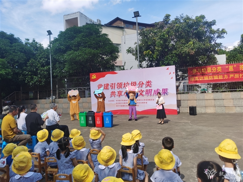 7月1日上午,為推進南寧市文明城市建設(shè),倡導(dǎo)小區(qū)居民綠色、文明生活,軌道地產(chǎn)物業(yè)公司黨支部聯(lián)合嘉賓社區(qū)黨委、南寧市直屬機關(guān)保育院濱湖分院在南湖公務(wù)員小區(qū)舉辦了以“黨建引領(lǐng)垃圾分類共享小區(qū)文明成果”為主題的文明宣傳活動。同時,南湖派出所受邀參與開展了反詐騙宣傳。