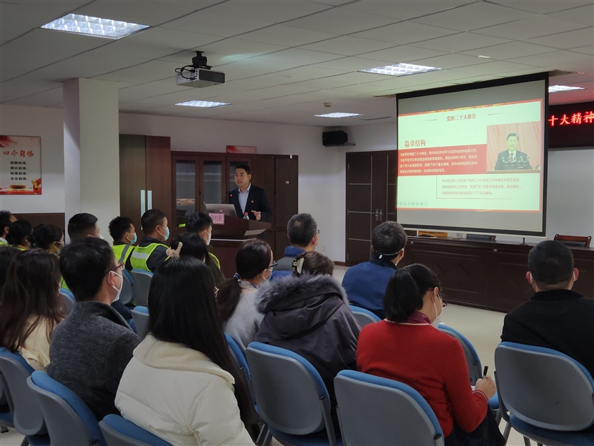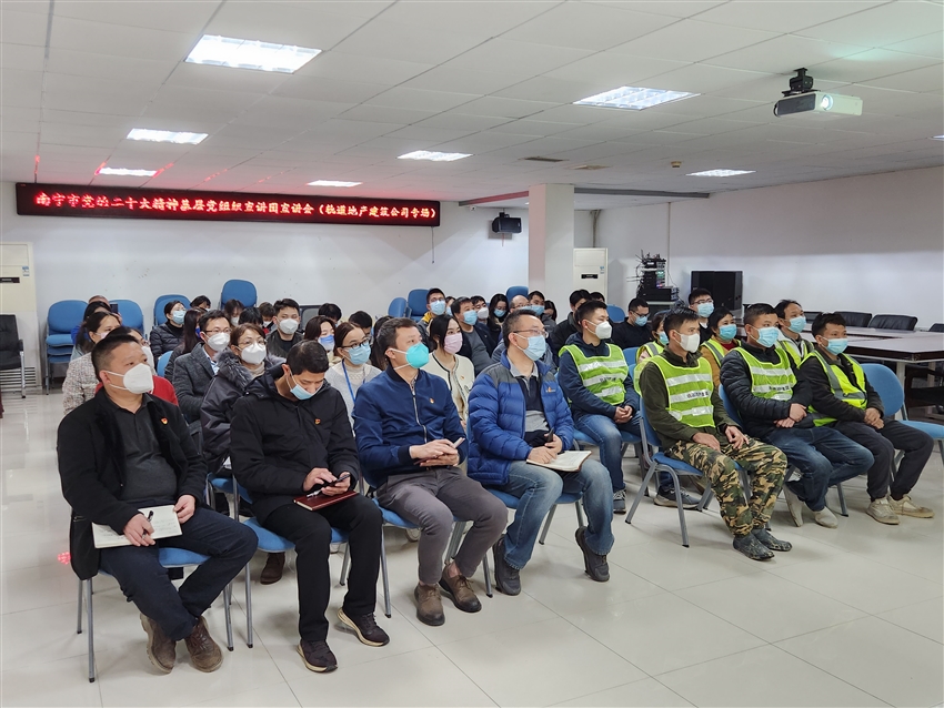 1月12日上午,南寧市黨的二十大精神基層黨組織宣講團宣講會在軌道地產(chǎn)建筑公司舉行。南寧市黨的二十大精神基層黨組織宣講團成員、南寧軌道地產(chǎn)公司黨委辦副主任梁柱民對參會人員進行宣講。軌道地產(chǎn)建筑公司領(lǐng)導(dǎo)班子、黨建聯(lián)盟單位黨員代表及建筑勞務(wù)工人代表約50人聆聽了宣講會。