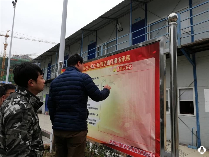 為進(jìn)一步加強(qiáng)項(xiàng)目管理人員廉潔意識(shí),提高責(zé)任意識(shí)、服務(wù)意識(shí),維護(hù)項(xiàng)目管理人員的良好形象,1月23日,房鐵建安公司項(xiàng)目部組織項(xiàng)目中層及以上管理人員開展廉潔承諾簽名活動(dòng)。