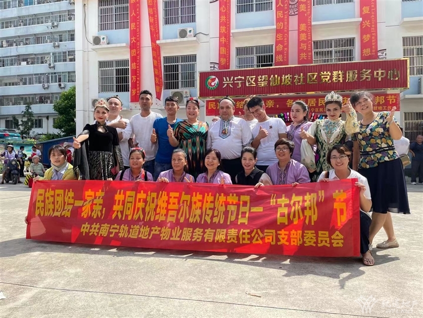 為弘揚民族文化,促進民族團結,鑄牢中華民族共同體意識,結合中國共產(chǎn)黨成立一百周年的契機,望仙坡社區(qū)、新疆駐桂工作組、興寧區(qū)民宗局于2021年7月15日上午在望仙坡社區(qū)廣場開展古爾邦節(jié)民族文化宣傳活動,軌道地產(chǎn)物業(yè)公司黨支部作為黨建聯(lián)盟單位,受邀參加此次活動,與各族群眾一起共同慶祝維吾爾族傳統(tǒng)節(jié)日--“古爾邦”節(jié)。