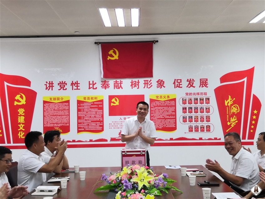 中房地鐵物業(yè)公司黨支部書記、董事長(zhǎng)、總經(jīng)理李院海指出,要認(rèn)真貫徹落實(shí)南寧市委關(guān)于“先鋒引領(lǐng)·脫貧攻堅(jiān)”大行動(dòng)部署要求,積極響應(yīng)集團(tuán)公司黨委和中房置業(yè)公司黨委關(guān)于捐助集團(tuán)公司定點(diǎn)幫扶貧困村的倡議,切實(shí)履行國企在脫貧攻堅(jiān)中的社會(huì)責(zé)任,為實(shí)現(xiàn)公司結(jié)對(duì)幫扶貧困村橫縣新福鎮(zhèn)獨(dú)村如期脫貧摘帽貢獻(xiàn)自己的力量。隨后,在李院海的帶領(lǐng)下,中房地鐵物業(yè)公司領(lǐng)導(dǎo)班子成員及各黨員依次上臺(tái)踴躍捐款。