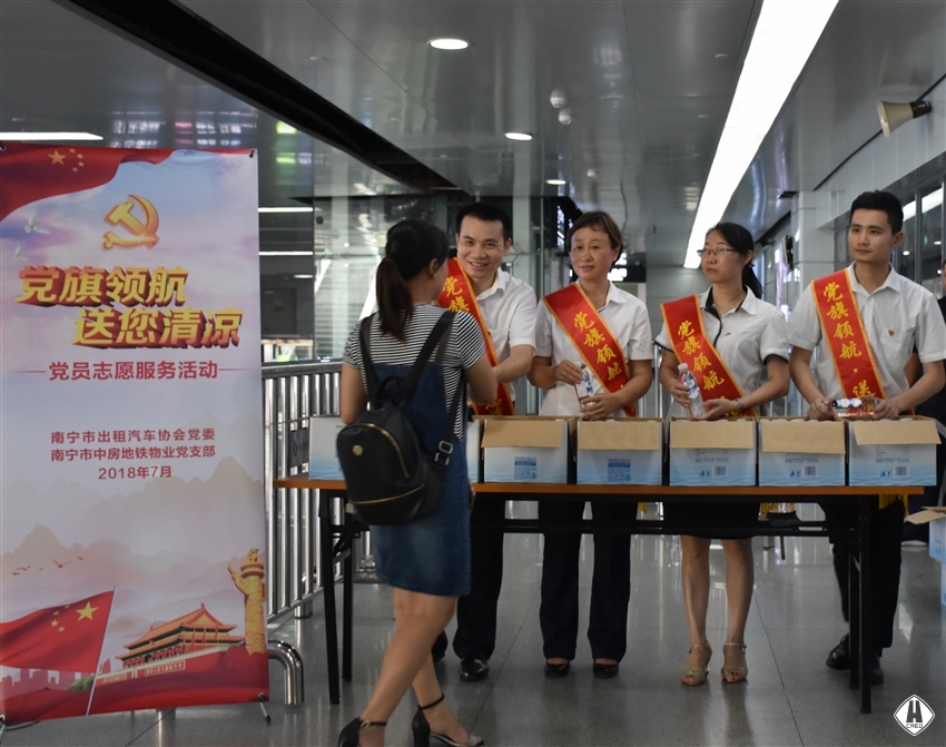 本次活動共設(shè)四組服務(wù)點,分別設(shè)在南寧東站北廣場蓄車場、南寧東站南廣場蓄車場、南寧東站北廣場乘客上車點及南寧東站南廣場乘客上車點,黨員志愿者通過發(fā)放解暑飲品、礦泉水等,旨在關(guān)心、慰問堅持在一線工作崗位工作的出租汽車駕駛員和在南寧東站南、北廣場乘坐出租汽車的廣大旅客,為他們送上一份清涼,提醒駕駛員和廣大乘客注意防暑降溫及提高安全生產(chǎn)意識,文明安全出行,體現(xiàn)了中房地鐵物業(yè)公司黨支部對出租車駕駛員和廣大旅客的人文關(guān)懷,提升南寧市出租汽車行業(yè)的整體服務(wù)質(zhì)量,營造火車東站良好的乘車環(huán)境。
