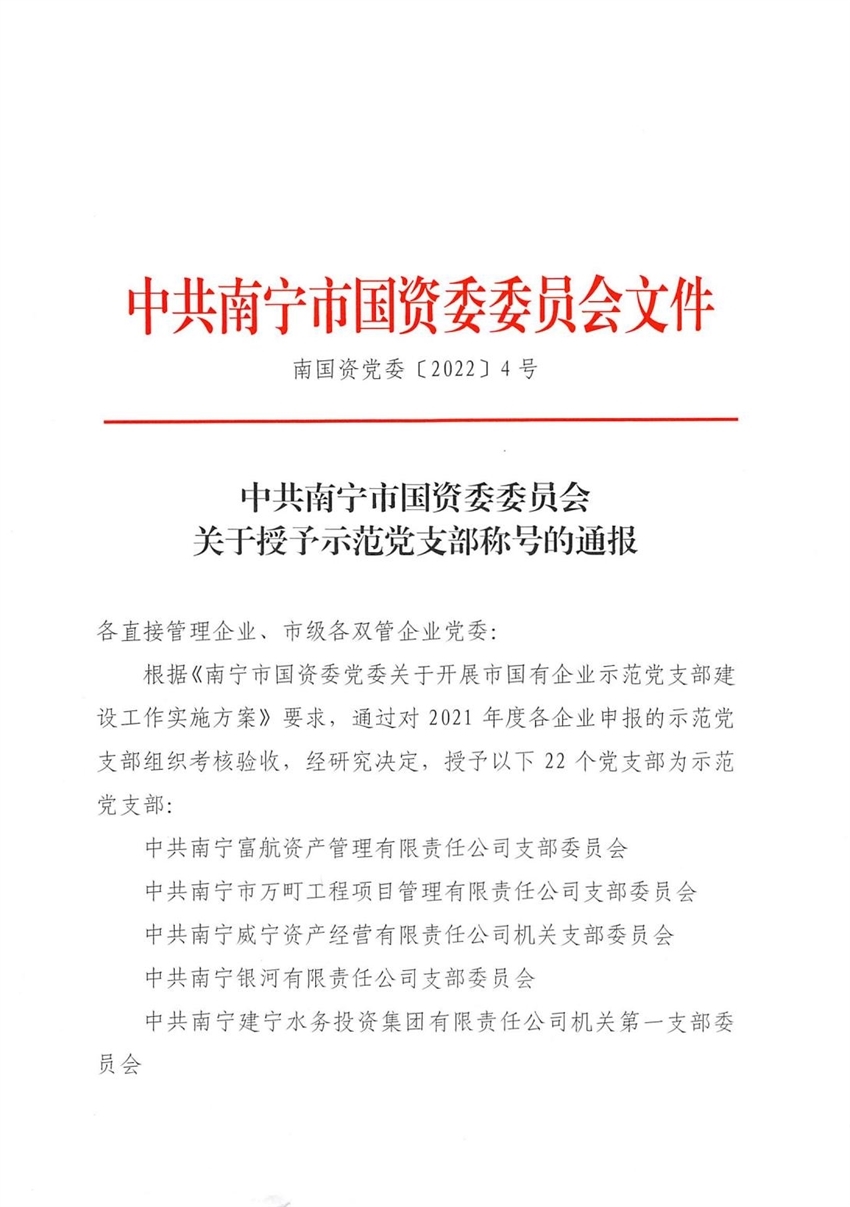 近日,中共南寧市國資委委員會(huì)下發(fā)《關(guān)于授予示范黨支部稱號(hào)的通報(bào)》,中共南寧軌道地產(chǎn)商業(yè)公司黨支部獲評(píng)示范黨支部。
