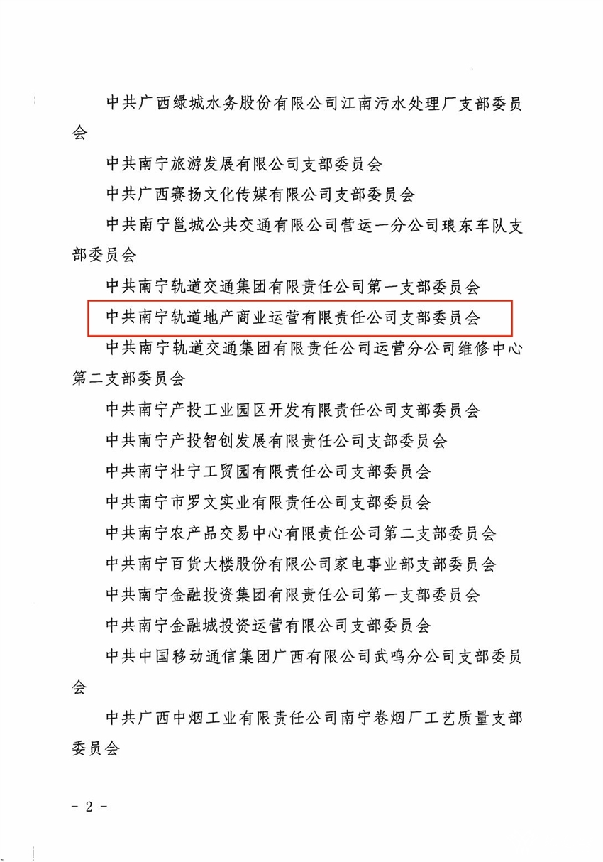 喜報(bào)!軌道地產(chǎn)商業(yè)公司黨支部獲評(píng)南寧市國資委“示范黨支部”榮譽(yù)稱號(hào)
