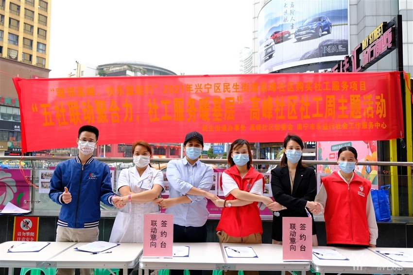 活動伊始,南寧市樂益行社會工作服務(wù)中心與軌道地產(chǎn)咨詢公司、廣西區(qū)總工會南寧職工康復(fù)醫(yī)院等愛心企業(yè)簽訂聯(lián)動服務(wù)倡議書。